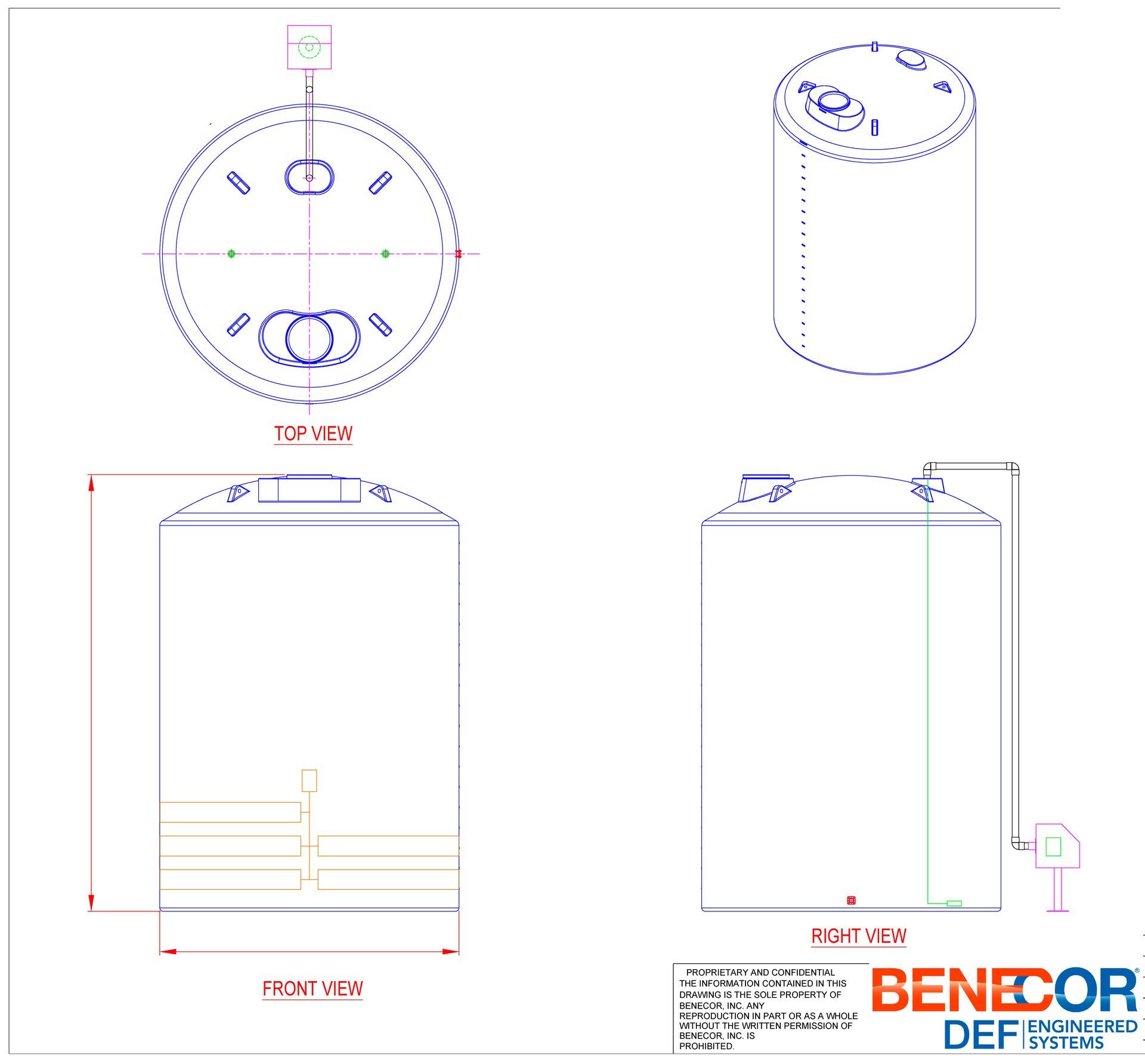 Benecor’s integrated heating and control systems deliver reliable thermal regulation, reduced energy loss, and continuous operational stability. This design directly mitigates cold-weather risks such as freezing, chemical degradation, pumping challenges, and tank stress, protecting both the stored chemical and the facility itself.